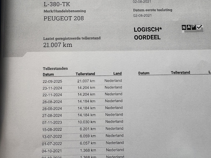 Kilometerstand gecontroleerd