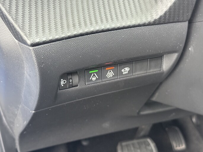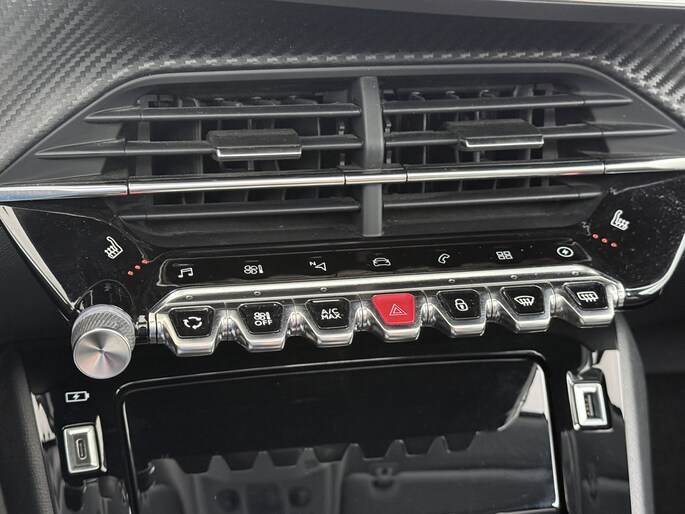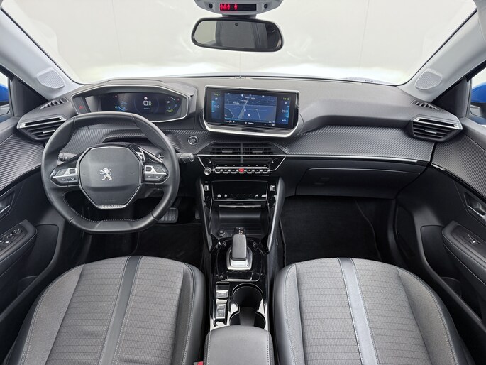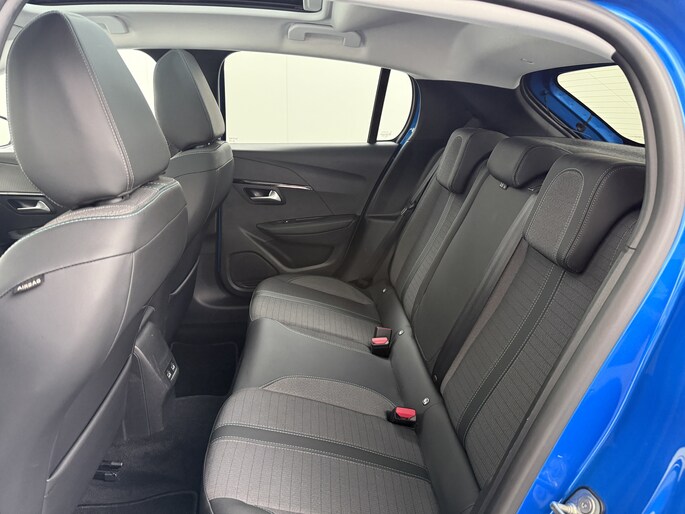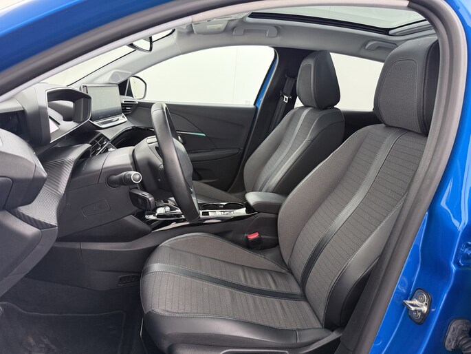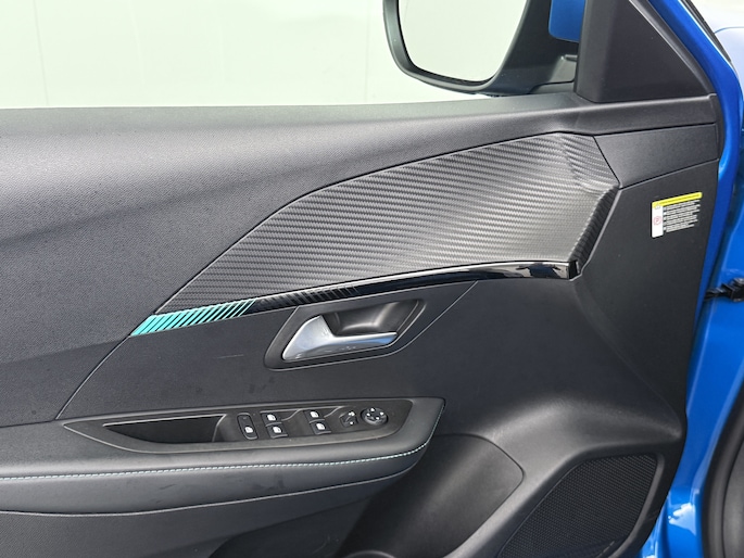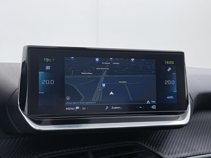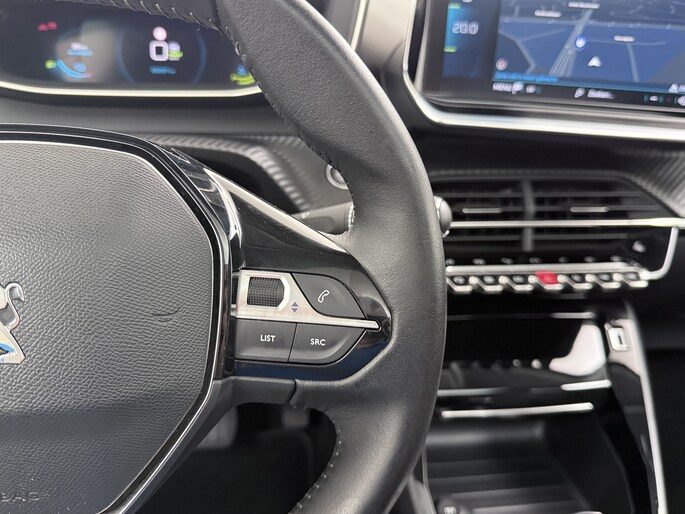 Zoals u mag verwachten van deze Peugeot e-208 is hij uitgerust met een reeks aan actieve veiligheidssystemen. De camera van de verkeersborddetectie herkent verschillende soorten verkeersborden en toont deze op het dashboard. Indien u onbedoeld de rijstrook lijkt te verlaten, reageert het Lane-keeping systeem meteen en corrigeert. Onbedoeld bumperkleven is er niet bij, dankzij de forward collision warning. Die waarschuwt direct als een botsrisico met uw voorligger dreigt. Bovenop deze veiligheidsfeatures heeft deze Peugeot bovendien vermoeidheidsherkenning, autonoom remsysteem en bandenspanningcontrolesysteem.
