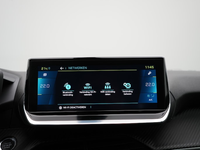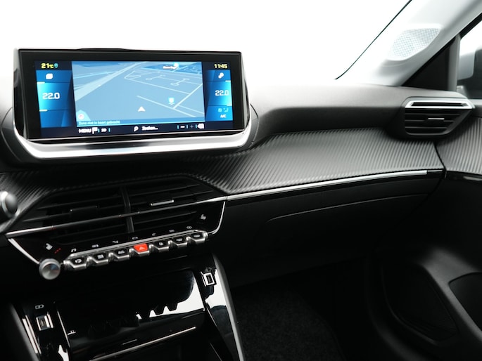 Met het digitale dashboard kan je de cockpit-interface naar jouw voorkeur instellen. Afstand schatten bij het achteruitrijden? Niet nodig. Je weet het precies, dankzij de achteruitrijcamera. Je weet altijd hoe de auto eraan toe is dankzij Connected Services. Ook handig voor de garage en de wegenwacht. Even de app uitlezen en klaar! In deze auto beschik jij natuurlijk over een full map navigatiesysteem. Het audiosysteem met DAB-radio biedt glasheldere geluidskwaliteit. Je bedient dit veilig, via het stuurwiel of met spraakbediening. Telefoon onderweg aan de lader? Daar komt geen kabeltje aan te pas, want deze Peugeot e-208 is voorzien van een draadloze oplaadmogelijkheid voor telefoons. De Peugeot is standaard voorzien van: automatische airconditioning, regensensor, cruise control, keyless entry, automatisch dimmende binnenspiegel en lederen stuur.