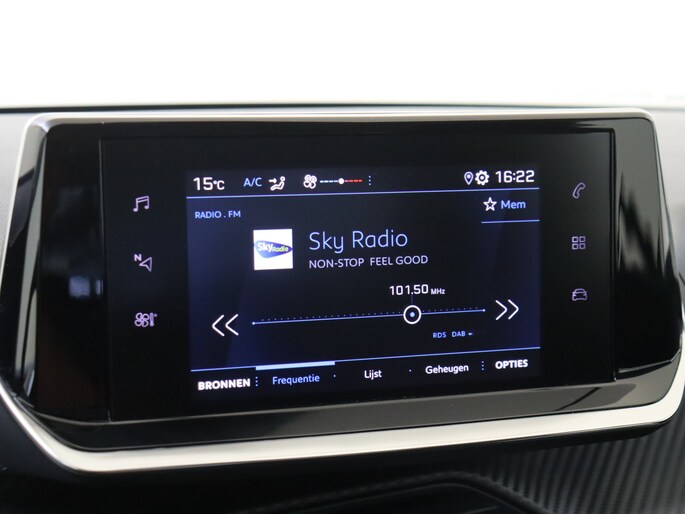 Appen met je auto? Geen probleem. Je kunt van overal contact opnemen, de functies controleren en activeren. Je bedient 'm met remote services. Veilig en handig: het audiosysteem laat zich bedienen vanaf het stuur. Voor storingvrije digitale radio-ontvangst zorgt de DAB-ontvanger. Cruise control houdt automatisch de ingestelde snelheid vast. Zo kun je je volledig op het verkeer concentreren. Deze auto heeft airconditioning aan boord. De uitrusting van deze Peugeot is met lederen stuur en centrale deurvergrendeling met afstandsbediening behoorlijk compleet.