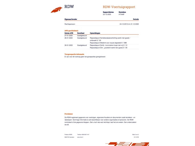 Kilometerstand gecontroleerd