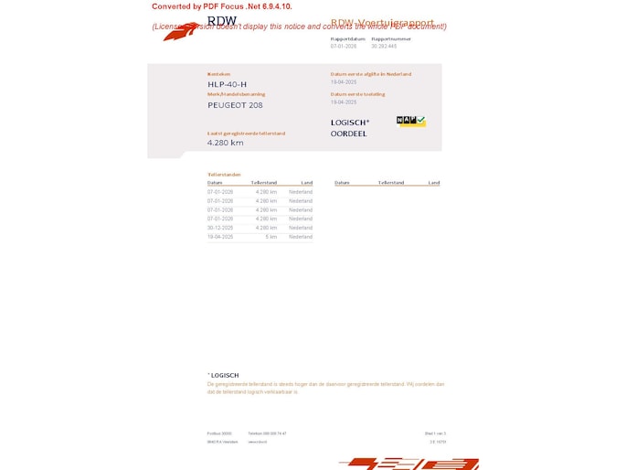 Kilometerstand gecontroleerd