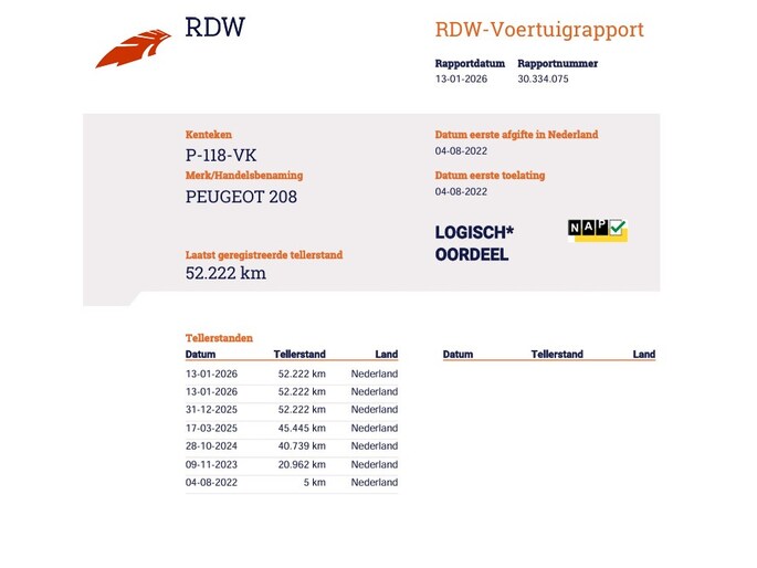 Kilometerstand gecontroleerd