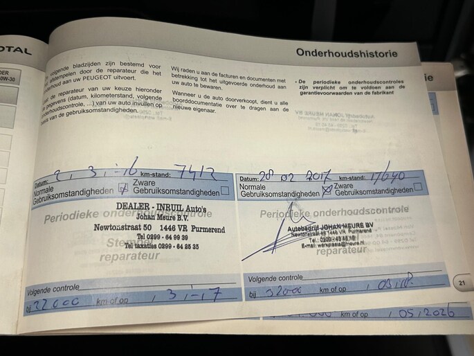 Onderhoudsboekjes: Aanwezig