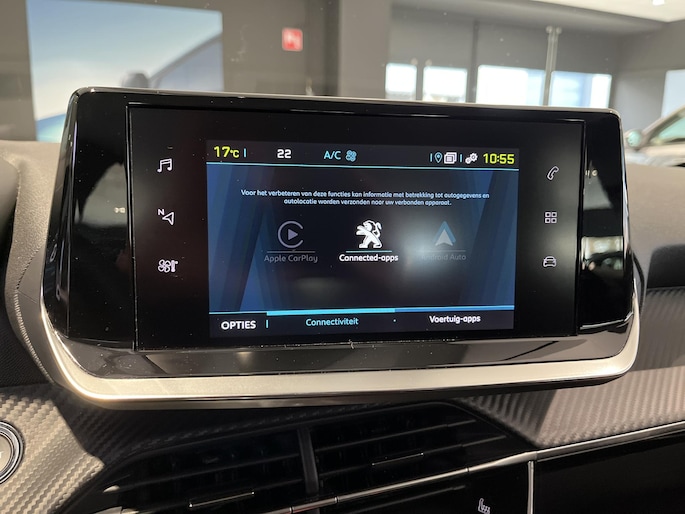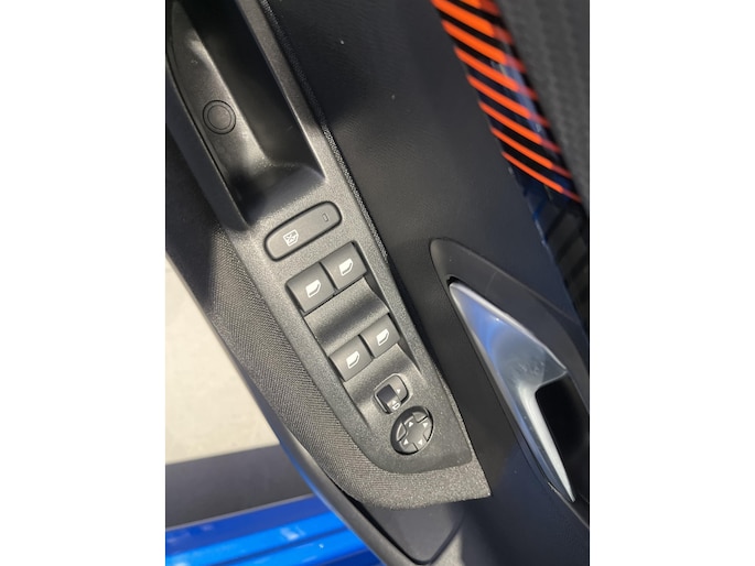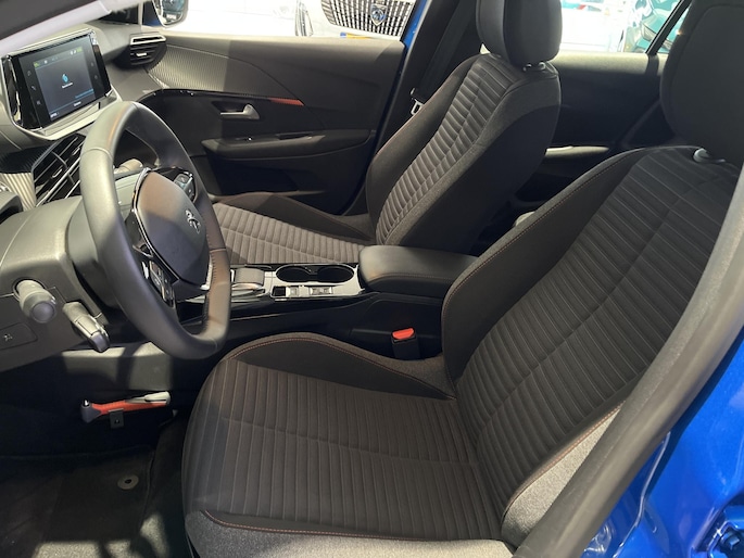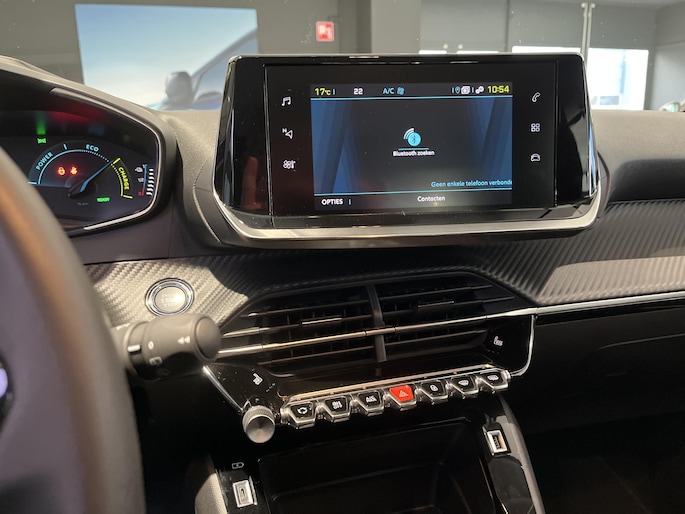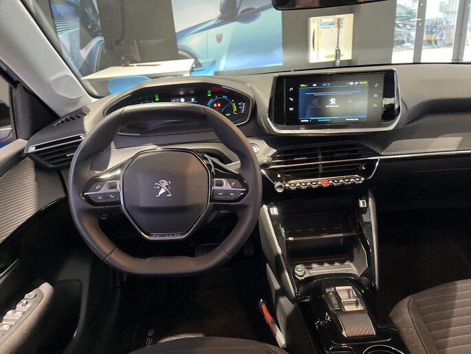 Deze Peugeot e-208 is voorzien van remote services. Via uw smartphone bedient u diverse functies ook op afstand en krijgt u informatie over de status van uw auto. Gemakkelijk en veilig is de bediening het audiosysteem en het full map navigatiesysteem met knoppen op het stuur. De audio-kwaliteit is geweldig, dankzij de DAB-ontvangst. Het spreekt voor zich dat een auto als deze ook van automatische airconditioning is voorzien. Superstrak parkeren wordt een eitje dankzij de parkeersensoren. Om de veiligheid onderweg te verhogen, heeft deze Peugeot zowel een automatisch inschakelbare verlichting als een regensensor aan boord, zodat hij zelf de verlichting en de ruitenwissers kan inschakelen. Ook cruise control, automatisch dimmende binnenspiegel, lederen stuur en centrale deurvergrendeling met afstandsbediening zijn aan boord.
