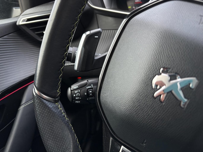 Zo is de Peugeot uitgerust met een sportpakket: zwarte wielkasten, achterspoiler, extra getint glas, 17 inch bi-color sportvelgen, FULL-LED koplampen en achterlichten, zwarte diffuser, aluminium pedalen, Apple Carplay, Android car, Driving select modus, Lederen kuipstoelen, MASSAGE-FUNCTIE, zwarte hemel, LED interieur verlichting, Carbon look dashboard, groene sticksels, AMBIENTE verlichting (verstelbaar), 3D pakket.