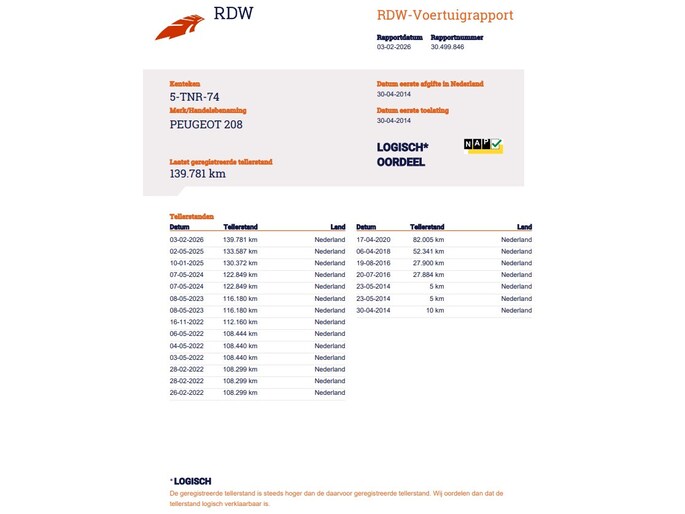 Kilometerstand gecontroleerd
