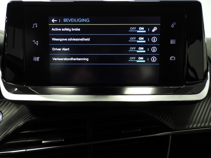 Geavanceerde veiligheidssystemen kijken tijdens elke rit met u mee en schatten continu de risico's in. In het instrumentarium kunt u bovendien de verkeersborden zien die u onderweg tegenkomt. Zo helpt deze Peugeot u om veiliger te rijden. Het Lane-keeping systeem doet precies wat nodig is: waarschuwen en corrigeren bij onbedoelde overschrijding van de rijstrooklijnen. Forward collision warning helpt u om kop-staart aanrijdingen te voorkomen. Ook helpen het vermoeidheidsherkenning, autonoom remsysteem en bandenspanningcontrolesysteem, uw rit tot een veilige rit te maken.