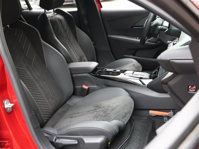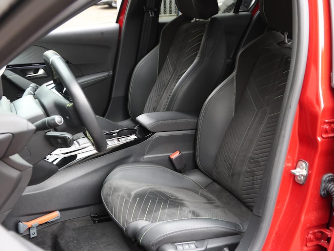 Het maakt niet uit of u voor de vormgeving of voor de elektrische aandrijving valt. Met de Peugeot e-208 zit u altijd goed. Met de elektromotor rijdt u stil en snel de toekomst in. Maar ook schoon en zuinig. Lang onderweg zijn kan een behoorlijke uitdaging zijn voor rug en schouders. Daarom zijn de verwarmbare voorstoelen voorzien van een weldadige massagefunctie. Zijwaartse g-krachten worden solide opgevangen door de sportstoelen. In deze auto profiteert u onder andere ook van: 17 inch lichtmetalen velgen, Full LED koplampen, extra getint glas, in delen neerklapbare achterbank en LED-achterlichten.