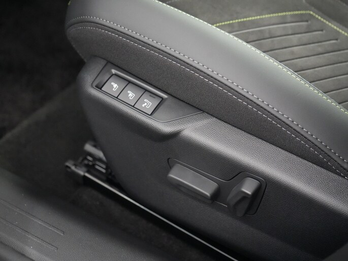 - Compact, met generfd en geperforeerd leder bekleed 'GT' stuurwiel met geïntegreerde bedieningsknoppen, stiksels in groen Adamite