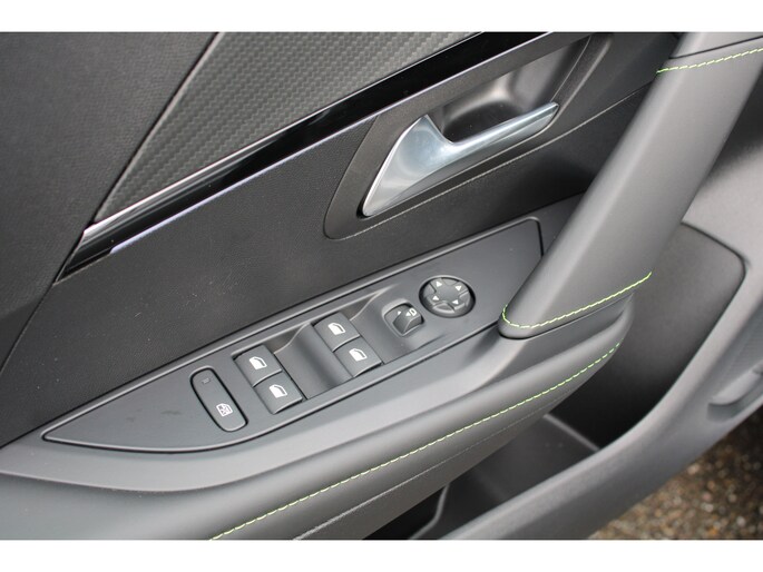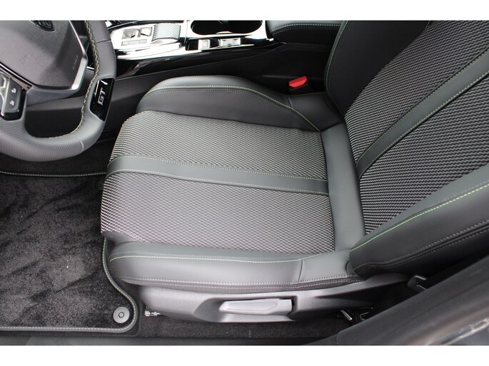- Armsteunen op de voorportieren bekleed met kunstleder met groen sierstiksel (GT-Line)