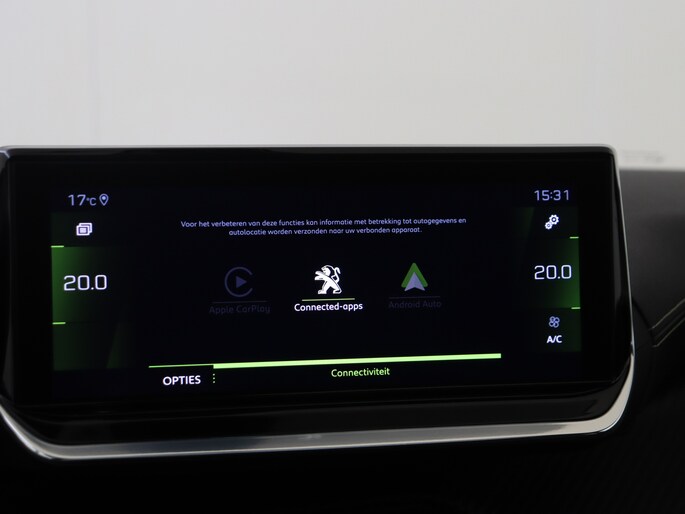 Stel de interface voor jouw cockpit naar wens in met het digitale dashboard van deze auto. Zelfs een kleine aanrijding kan flinke kosten veroorzaken. Gelukkig laat de achteruitrijcamera precies zien wat er zich achter de auto bevindt en geeft een waarschuwingssignaal. Met adaptive cruise control houdt de auto zelfstandig afstand tot jouw voorligger. Een veiligheidsverhogende optie waarmee je comfortabel onderweg bent. Het infotainmentsysteem bedien je met je vingers of met je stem, met dank aan de geïntegreerde stembediening. In één oogopslag weet je de complete systeemstatus van deze auto. Dankzij Connected Services. Ook is de Peugeot uitgerust met: full map navigatiesysteem, automatische airconditioning, draadloos opladen, DAB ontvangst, regensensor en sportstuurwiel.