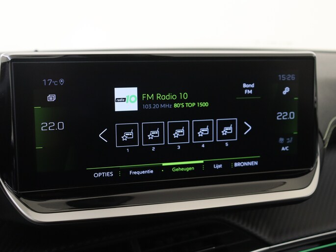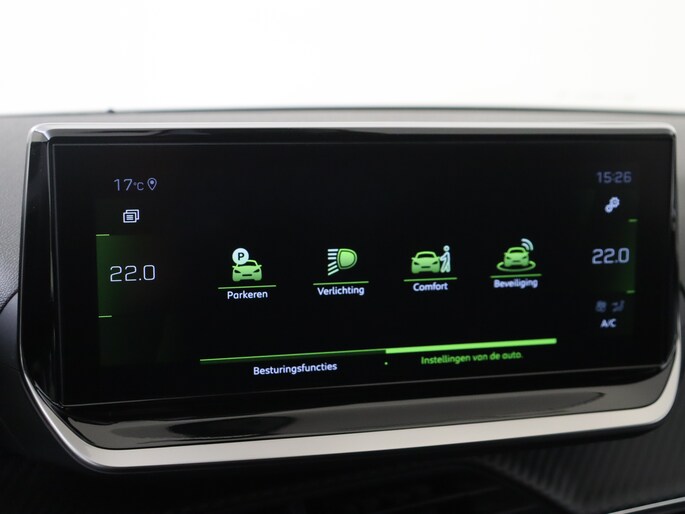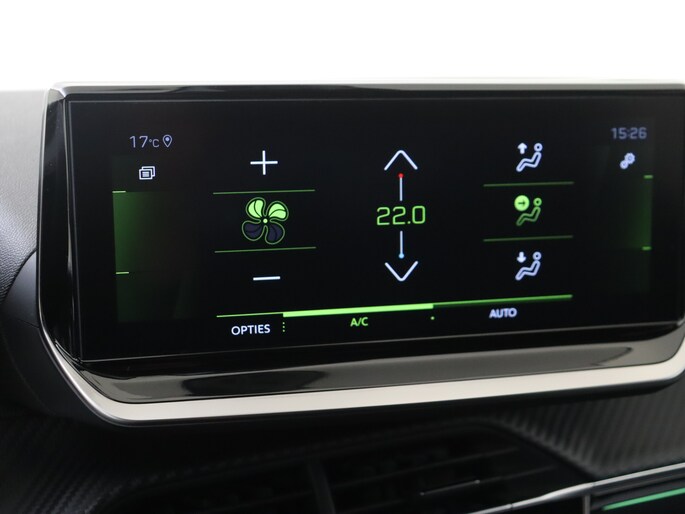 Het personaliseren van jouw cockpitinterface is mogelijk met het digitale dashboard in deze auto. De achteruitrijcamera maakt inparkeren gemakkelijker dan ooit. Adaptive cruise control is veilig en comfortabel. De snelheidsregelaar houdt automatisch afstand tot het voertuig dat voor je rijdt. Deze Peugeot 208 is 'connected'. Belangrijke functies worden permanent gemeten en zijn uit te lezen via een speciale app, ook op afstand. Je bedient het in dashboard opgenomen navigatiesysteem en het audiosysteem met DAB-radio via knoppen op het stuur, of zelfs met je stem. Zo kun jij steeds jouw aandacht gericht houden op de weg. Je bent in deze Peugeot ook voorzien van automatische airconditioning, regensensor, sportstuurwiel, keyless entry en automatisch dimmende binnenspiegel.