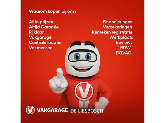 Vakgarage de Liesbosch heeft altijd een wisselend aanbod van +- 80 occasions staan. De occasions die door Vakgarage de Liesbosch aangeboden worden hebben bij verkoop en anders bij aflevering altijd een geldige APK, hier hoeft niet extra voor betaald te worden tenzij anders aangegeven. “De prijs voor deze auto is inclusief een geldige APK en 12 maanden wettelijk bepaalde garantie.