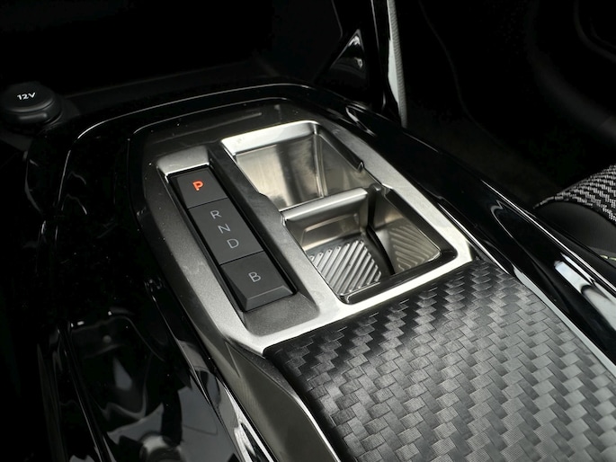 • Dashboard in zacht materiaal met carboneffect en hoogglans zwarte sierstrip met chromen bies