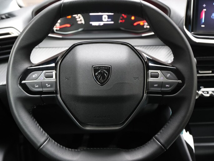 In deze 208 vindt u schakelaars op het stuur om het navigatiesysteem te bedienen en het audio-installatiesysteem met DAB-ontvangst. Boem is ho? Niet bij deze Peugeot 208. De piepjes van de parkeersensoren waarschuwen u op tijd voor obstakels. Ook op de korte stukken is de cruise control een uitkomst. Kijk maar bij de benzinepomp! In een auto als deze mag u ook airconditioning verwachten. Wat u ook in deze auto kunt vinden zijn lederen stuur en centrale deurvergrendeling met afstandsbediening.