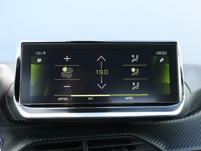 Zoals u mag verwachten van deze Peugeot 208 is hij uitgerust met een reeks aan actieve veiligheidssystemen. De actuele snelheidslimiet, een inhaalverbod en andere verkeersborden. De verkeersborddetectie ondersteunt u tijdens elke rit. Het Lane-keeping systeem doet precies wat nodig is: waarschuwen en corrigeren bij onbedoelde overschrijding van de rijstrooklijnen. Forward collision warning waarschuwt voor een kop-staart botsing. In deze Peugeot vinden we verder een hill hold functie, brake assist, vermoeidheidsherkenning en bandenspanningcontrolesysteem.