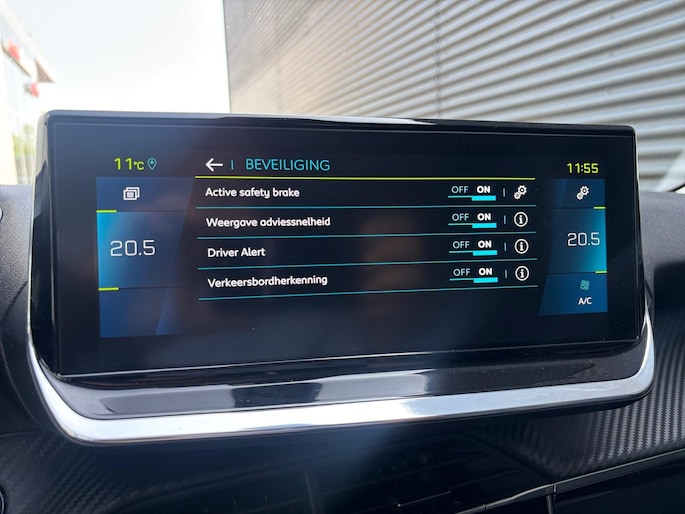 In de Peugeot e-208 heeft uw veiligheid en die van uw omgeving prioriteit. In het instrumentarium kunt u bovendien de verkeersborden zien die u onderweg tegenkomt. Zo helpt deze Peugeot u om veiliger te rijden. Mooi binnen de lijnen van de rijstrook blijven? Het Lane-keeping systeem helpt altijd een handje. Het forward collision warning-systeem waarschuwt indien een botsing dreigt met een voorliggend of tegemoetkomend voertuig. De veiligheid van deze auto wordt verder verhoogd door vermoeidheidsherkenning, autonoom remsysteem en bandenspanningcontrolesysteem.