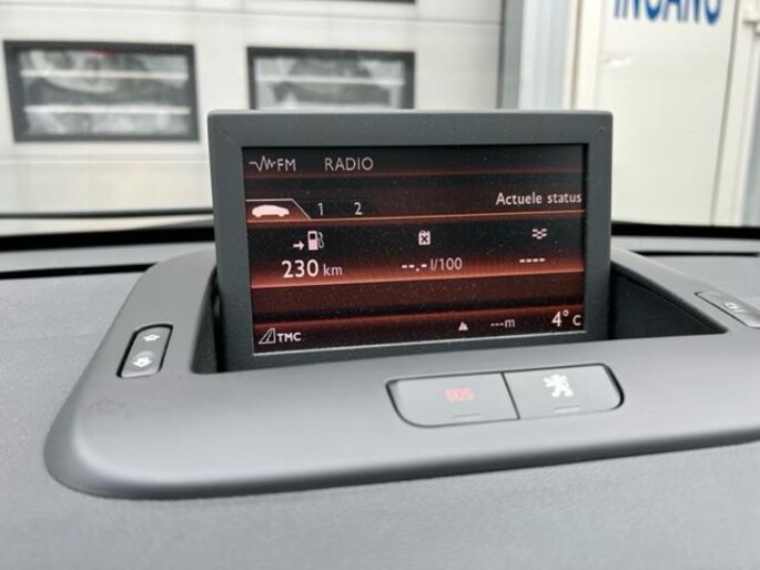 Het audio-installatiesysteem is gekoppeld aan het navigatiesysteem en is bovendien voorzien van bluetooth. Natuurlijk is een complete auto als deze ook voorzien van sensoren die de omgeving in de gaten houden. Deze Peugeot heeft niet alleen een automatisch inschakelbare verlichting aan boord, maar ook een regensensor en natuurlijk zijn er ook parkeersensoren achter. De cruise control vermindert het brandstofverbruik en vergroot het comfort. Extra opties op deze auto zijn: verstelbaar stuur, automatisch dimmende binnenspiegel, bestuurders-informatie-systeem, centrale deurvergrendeling met afstandsbediening en buitentemperatuurmeter.