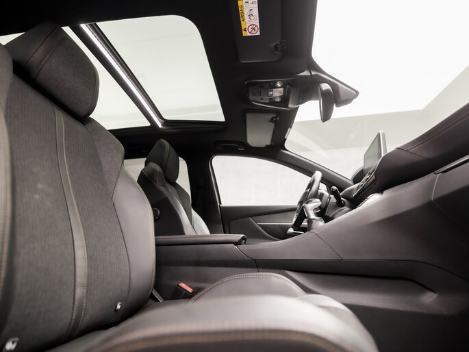 1.2 PureTech GT Line (PANORAMADAK, APPLE CARPLAY, GROOT NAVI, 360 CAMERA, LED KOPLAMPEN, KEYLESS, LEDER, SPORTSTOELEN, GETINT GLAS, FOCAL AUDIO, ZWART HEMEL, NIEUWE APK, NIEUWSTAAT)