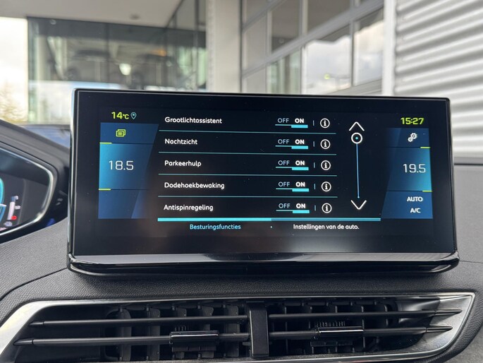 De geavanceerde technologie in deze Peugeot is in staat om onderweg het verkeer om u heen te monitoren en er op te reageren. Zo hebt u als het ware een automatische co-piloot aan boord. Snelheid en andere benodigde info bekijkt u op de hoog geplaatste Peugeot i-Cockpit, hiermee is het een stuk veiliger rijden want u hoeft uw ogen niet meer van de weg te houden om te kijken hoe hard u rijdt. Tijdens de rit hebt u altijd een bijrijder, want de verkeersbord-detectie leest de borden langs de weg en projecteert ze voor u op het instrumentarium. Voorzien van het Lane-keeping systeem. Ofwel: blijf automatisch in je baan. U bent mede dankzij dodehoekdetectie, forward collision warning system, nachtzichtassistentie (nightvision), hill hold functie, brake assist en vermoeidheidsherkenning steeds veilig onderweg.