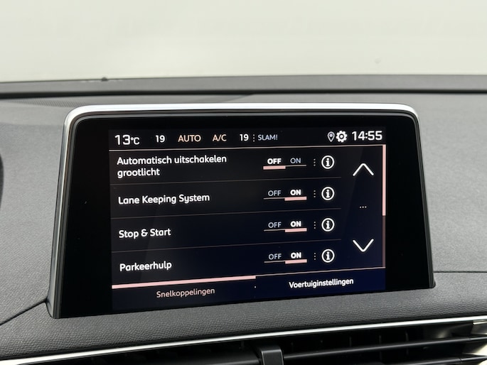 Zoals u mag verwachten van deze Peugeot 3008 is hij uitgerust met een reeks aan actieve veiligheidssystemen. Bij de veiligheidssystemen van deze Peugeot hoort ook de verkeersbord-detectie. Die leest tijdens het rijden als het ware met u mee en attendeert u op de significante verkeersborden langs en boven de weg. Het Lane-keeping systeem zorgt dat u mooi binnen de lijntjes blijft. Ongemerkt buiten de rijstrook komen is er niet meer bij. Onbedoeld bumperkleven is er niet bij, dankzij de forward collision warning. Die waarschuwt direct als een botsrisico met uw voorligger dreigt. Bovenop deze veiligheidsfeatures heeft deze Peugeot bovendien dodehoekdetectie, hill hold functie, brake assist, vermoeidheidsherkenning en bandenspanningcontrolesysteem.