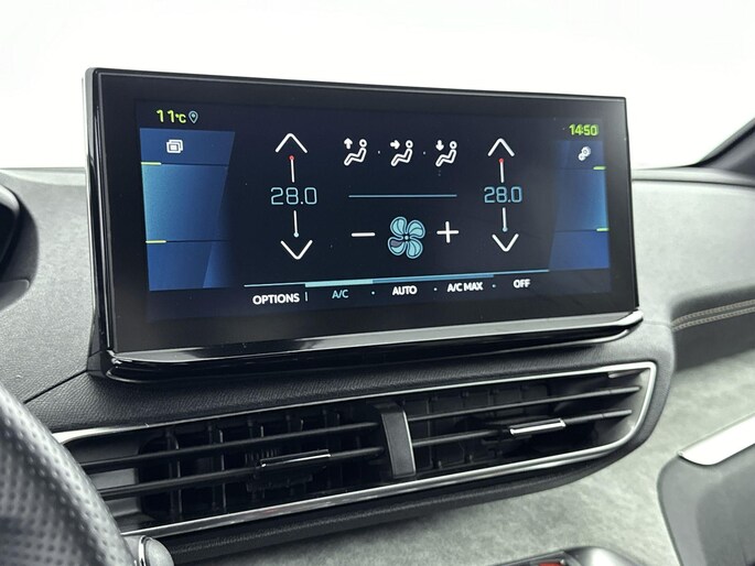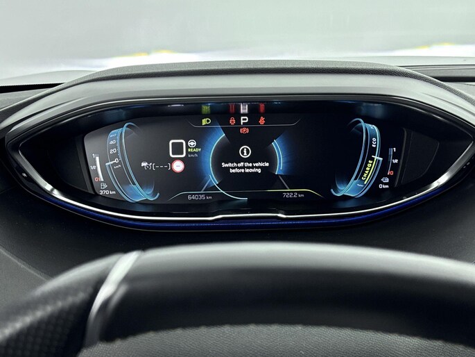 Het digitale dashboard geeft alle up-to-date info en functies voor een slimme en veilige rit. Niets achter deze auto blijft verborgen door de achteruitrijcamera. Een veilig gevoel! Met adaptive cruise control houdt de auto zelfstandig afstand tot uw voorligger. Een veiligheidsverhogende optie waarmee u comfortabel onderweg bent. Spraaksturing is onderdeel van de uitrusting van deze auto. Met uw stem kunt u de belangrijkste voertuigfuncties bedienen. Als u 'm vraagt 'hoe gaat het?' geeft deze auto zelf het antwoord. Via de app op uw smartphone. U checkt de meters waar u maar wilt, of activeert diverse functies alvast. Ook is de Peugeot uitgerust met: premium audiosysteem, full map navigatiesysteem, electronic climate control, draadloos opladen, DAB ontvangst en regensensor.