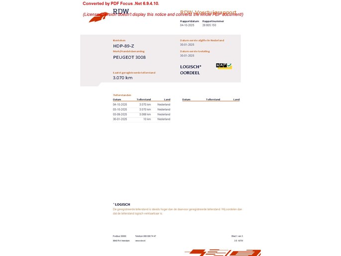 Kilometerstand gecontroleerd