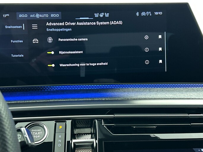 Deze Peugeot is voorzien van verschillende intelligente veiligheidsvoorzieningen. Ze kijken tijdens het rijden als het ware met u mee, ze signaleren potentieel gevaarlijke situaties en in een aantal gevallen kunnen ze ook ingrijpen. Rijden met het overzicht van een straaljagerpiloot? De praktische en veilige head-up display projecteert dashboardinfo binnen uw gezichtsveld, zodat u uw blik nooit hoeft te verplaatsen. Oog op de weg! Bij de veiligheidssystemen van deze auto hoort ook de verkeersbord-detectie. Die leest tijdens het rijden als het ware met u mee en attendeert u op de significante verkeersborden langs en boven de weg. Het Lane-keeping systeem garandeert dat u zich niet onverhoeds buiten de lijnen van de rijstrook begeeft. Dankzij veiligheidsvoorzieningen als dodehoekdetectie, hill hold functie, vermoeidheidsherkenning, autonoom remsysteem en bandenspanningcontrolesysteem, bent u steeds veilig onderweg.
