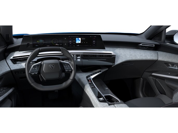 • PEUGEOT Panoramic i Cockpit® met zwevend dubbel HD scherm (2 x 10'') Stijlelementen (Middenconsole bekleed met gemêleerde stof RIMINI, glanzend zwart frontpaneel , strip in Stene Grey en armleuning bekleed met gemêleerde stof RIMINI, Portierbekleding in gemêleerde stof RIMINI, bergruimte in grafeen en strip in Stene Grey, kunstleder armsteunen voorin afgewerkt met stiksel, Zacht dashboard bekleed met gemêleerde stof RIMINI en open bergruimte in grafeen , glanzend zwart voorpaneel en ventilatieopeningen met decoratie in Stene Grey)