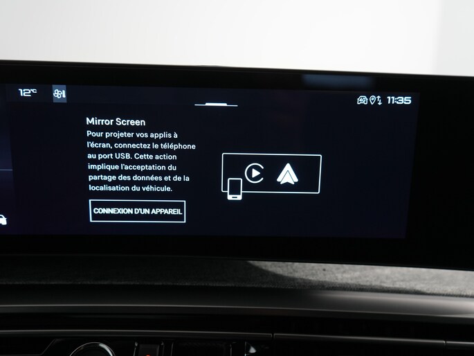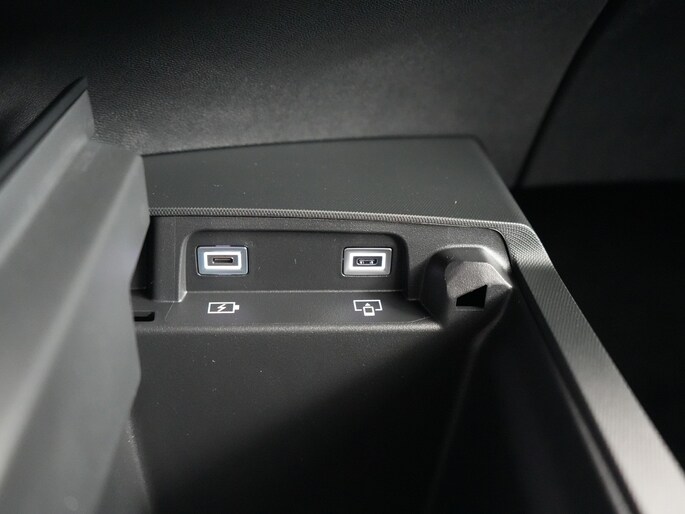 - PEUGEOT i Connect ® (Bluetooth connectiviteit, DAB+ digitale radio-ontvangst, Draadloze ‘Mirror Screen’ (Apple CarPlay / Android Auto), USB-C-aansluiting voorin: 1x in de armsteun in de middenconsole voor opladen + data en 1x opladen)