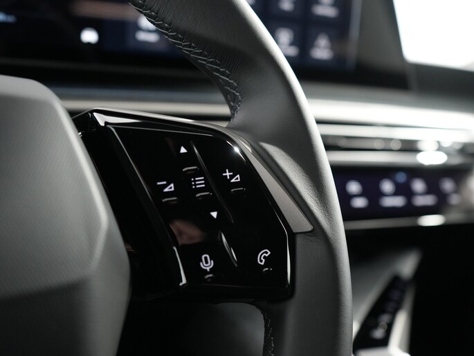 • Compact met leder bekleed stuurwiel met in glanzend zwart uitgevoerde geïntegreerde bedieningsknoppen, decoraties in Stene Grey