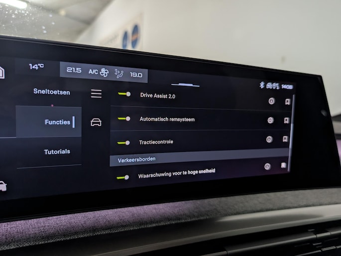 Geavanceerde systemen kunnen tijdens de rit bepaalde taken van u overnemen. Zo kijken er als het ware steeds extra ogen met u mee, zodat u tijdig kunt reageren op noodsituaties. Dankzij de head-up display krijg je de gewenste dashboardinfo op de voorruit geprojecteerd. In het instrumentarium kunt u bovendien de verkeersborden zien die u onderweg tegenkomt. Zo helpt deze Peugeot u om veiliger te rijden. Het Lane-keeping systeem garandeert dat u zich niet onverhoeds buiten de lijnen van de rijstrook begeeft. Met voorzieningen als dodehoekdetectie, hill hold functie, vermoeidheidsherkenning, autonoom remsysteem en bandenspanningcontrolesysteem, bent u altijd veilig onderweg.