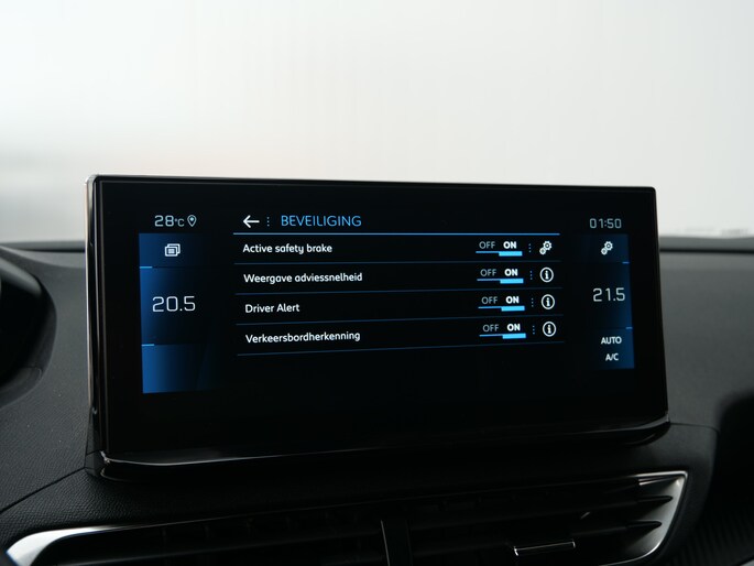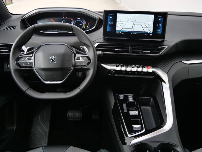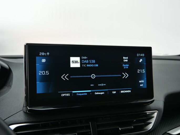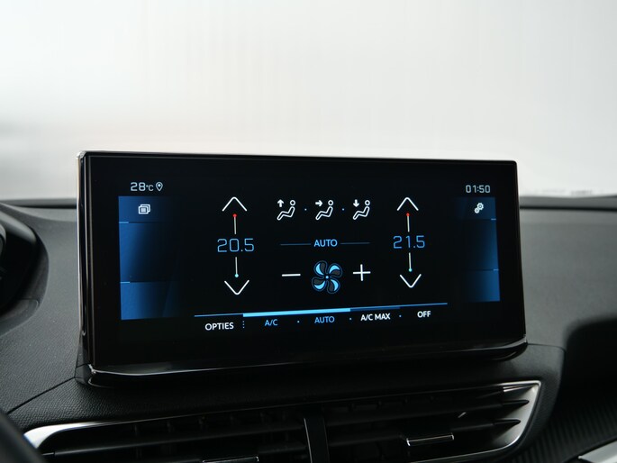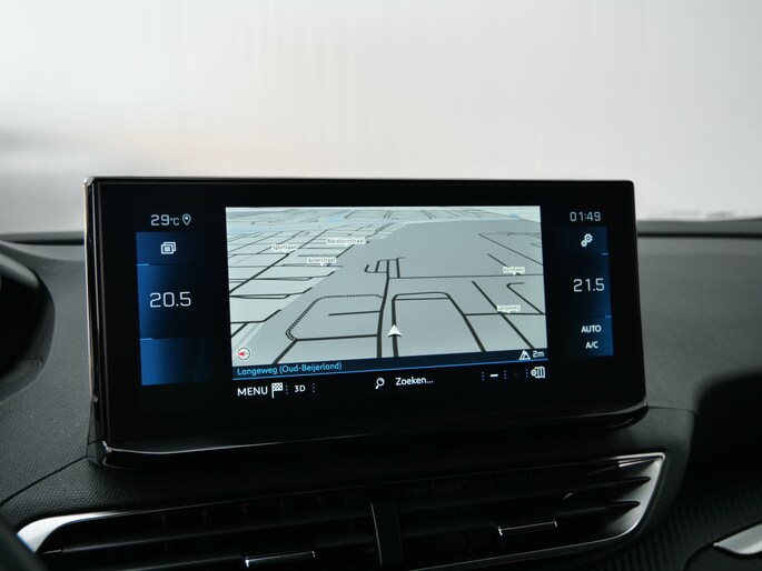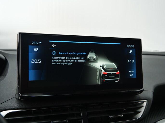 Het digitale dashboard is qua lay-out en zichtbaarheid superslim ingedeeld. Alle functies in één keer in beeld! Met de achteruitrijcamera ziet u wat er achter de auto gebeurt. Zo rijdt u moeiteloos achteruit. Terwijl het full map navigatiesysteem de ideale route voor u uitstippelt, geniet u van de kwaliteit van het audiosysteem met DAB-ontvangst. De bediening is bovendien gemakkelijk via knoppen op het stuur of via spraak. Of het buiten nu warm is of koud, dankzij electronic climate control is het binnen altijd behaaglijk. Het luxeniveau in deze Peugeot is niet alleen gericht op comfort, maar ook op uw veiligheid. Tal van sensoren helpen u om de omgeving in de gaten te houden. De automatisch inschakelbare verlichting zorgt dat automatisch de verlichting wordt ingeschakeld als het donker wordt, wat bijvoorbeeld in tunnels erg handig is. En de regensensor zet de ruitenwissers aan zonder dat u eraan hoeft te denken. En dan is deze auto ook nog eens voorzien van cruise control, keyless entry, buitentemperatuurmeter, automatisch dimmende binnenspiegel en lederen stuur.