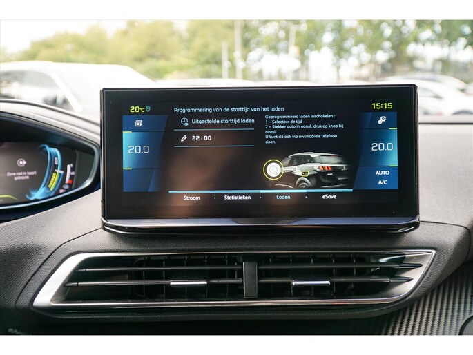Deze 3008 is voorzien van de optie 7,4kw on board charger om sneller op te laden afhankelijk van de aansluiting. Tevens zijn de (thuis)laadtijden in te programmeren via de app of boordcomputer. Via diezelfde My Peugeot app kan de tempratuur in de auto voor het wegrijden gekoeld of verwarmd worden. Comfortabel in de zomer, praktisch tegen bevroren ramen in de winter.