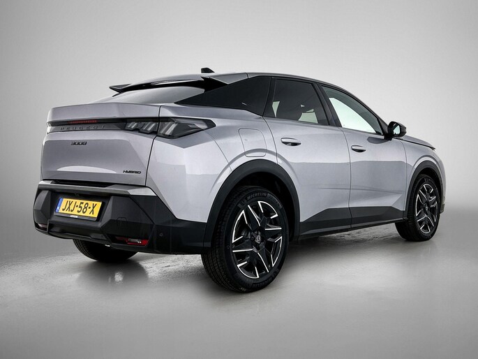 Alle technologie in de Peugeot 3008 is er op gericht om uw rit veilig en gemakkelijk te laten verlopen. Deze hybride heeft dankzij de extra elektromotor een zeer laag brandstofverbruik. Tot de uitrusting behoren ook 19 inch lichtmetalen velgen, LED koplampen, geluidsisolerende ramen, dakspoiler, in hoogte verstelbare voorstoelen en in delen neerklapbare achterbank.