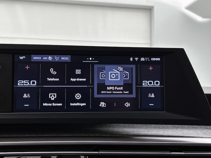 Een gevisualiseerd overzicht van alle belangrijke functies wordt geleverd door het digitale dashboard. Hoeveel ruimte heeft u nog bij het inparkeren? De achteruitrijcamera brengt helder in beeld wat zich achter de auto bevindt en geeft een geluidssignaal. Hoe is het met de banden, de accu en andere onderdelen? Connected Services maakt het inzichtelijk, 24/7 via de app. Ook is de auto voorzien van electronic climate control. De audiobediening op het stuur zorgt dat muziek en informatie kunnen worden aangepast zonder het zicht op de weg te verliezen. Deze Peugeot is voorzien van DAB ontvangst, regensensor, cruise control, keyless entry, buitentemperatuurmeter en automatisch dimmende binnenspiegel.