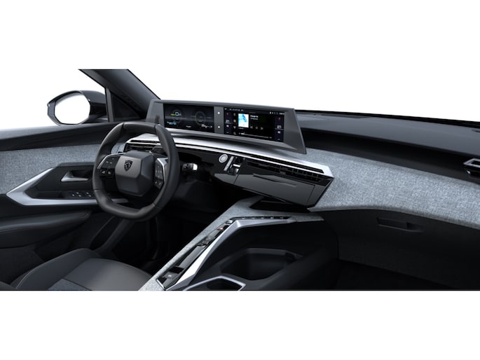 - PEUGEOT Panoramic i Cockpit® met zwevend dubbel HD scherm (2 x 10'') Stijlelementen (Middenconsole bekleed met gemêleerde stof RIMINI, glanzend zwart frontpaneel , strip in Stene Grey en armleuning bekleed met gemêleerde stof RIMINI, Portierbekleding in gemêleerde stof RIMINI, bergruimte in grafeen en strip in Stene Grey, kunstleder armsteunen voorin afgewerkt met stiksel, Zacht dashboard bekleed met gemêleerde stof RIMINI en open bergruimte in grafeen , glanzend zwart voorpaneel en ventilatieopeningen met decoratie in Stene Grey)