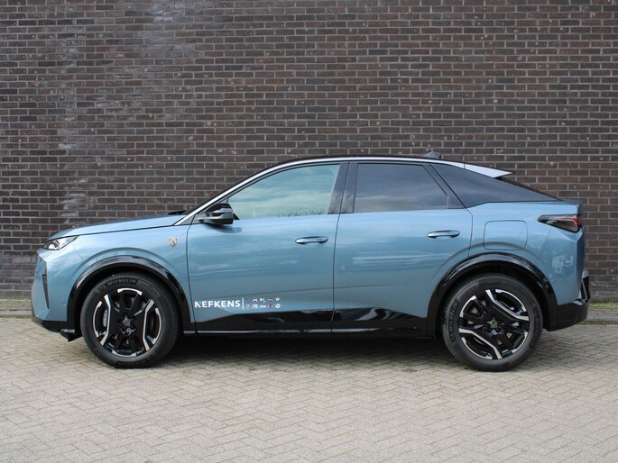 Duurzaam en dynamisch, de Peugeot e-3008 verenigt deze twee uitersten in zich. Dit is een auto uit 2025, er staat 1450 kilometer op de teller. Power, stilte en nul procent uitlaatgas krijgt u met de elektromotor. Het elektrisch bediende glazen panorama dak laat een weelde van licht naar binnen vallen. En aan de achterzijde opent u het elektrisch bedienbare achterklep met één simpele klik. Ondanks koele temperaturen buiten, blijft u binnen warm met de stoelverwarming met massagefunctie en verwarmbare stuur en achterbank. De ergonomisch comfort stoelen geven precies de juiste ondersteuning voor rug en schouders. De koplampen zijn voorzien van de allernieuwste lichttechnologie: matrix LED-verlichting. Bij de uitrusting van deze auto horen onder meer 19 inch lichtmetalen velgen, geluidsisolerende ramen, dakspoiler, in delen neerklapbare achterbank, LED-achterlichten en verstelbare lendensteunen.