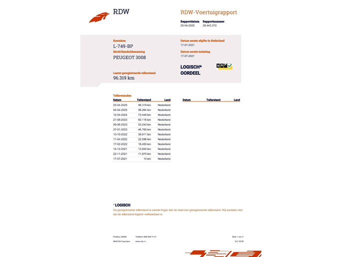 Kilometerstand gecontroleerd