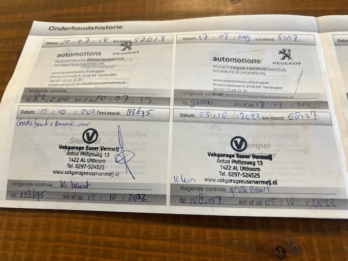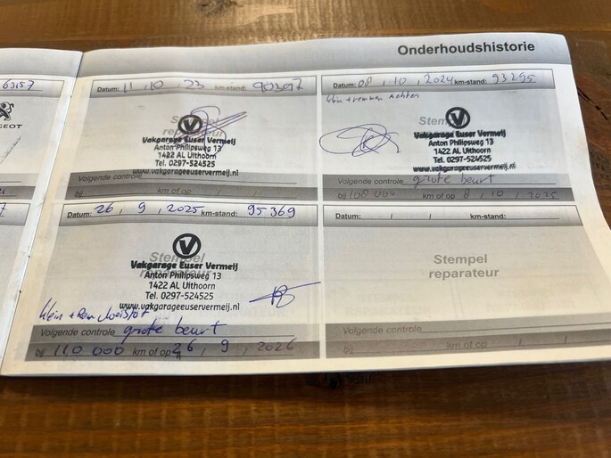 Onderhoudsboekjes: Aanwezig