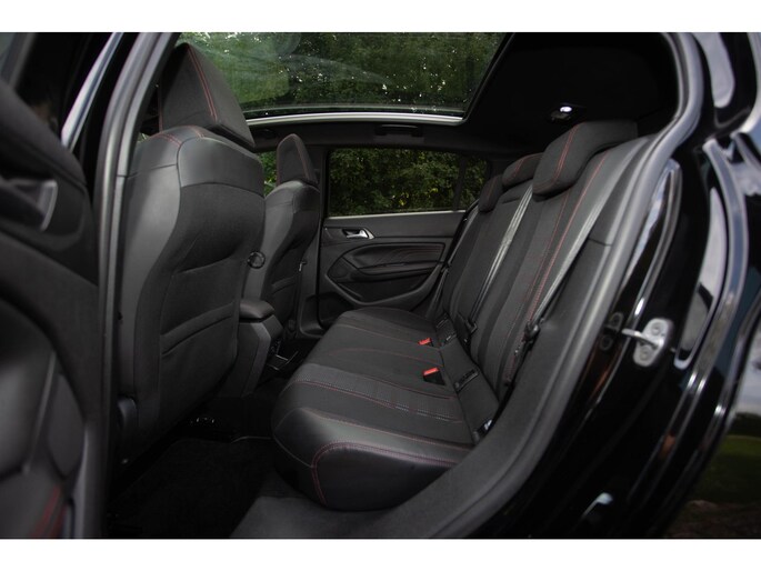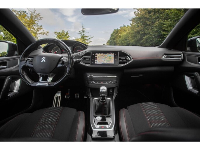 Deze 308 heeft een strakke, zwarte metallic lak en 17-inch lichtmetalen velgen die samen met het panoramisch glazen dak voor een moderne, sportieve uitstraling zorgen. De verwarmbare, elektrisch verstelbare buitenspiegels en het getinte glas bieden extra comfort en privacy. Binnenin vind je een verzorgd interieur met multifunctioneel D-shape leren stuurwiel en comfortabele stoelen in een mooie stof/alcantara-bekleding. De deels neerklapbare achterbank creëert eenvoudig extra ruimte voor bagage, boodschappen of koffers.