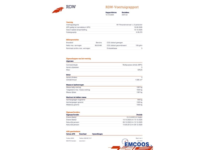 | Wegenbelasting/3mnd | € 199 - € 217 |