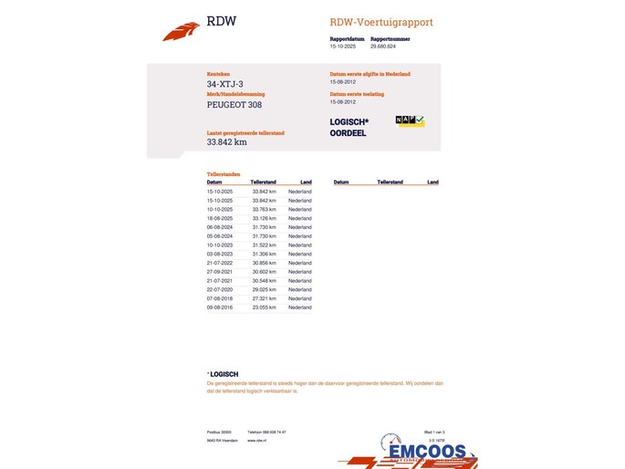 Kilometerstand gecontroleerd