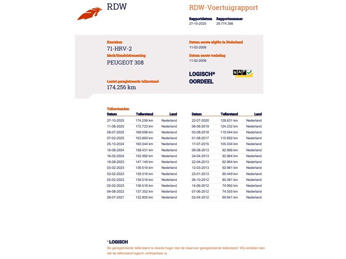 Kilometerstand gecontroleerd