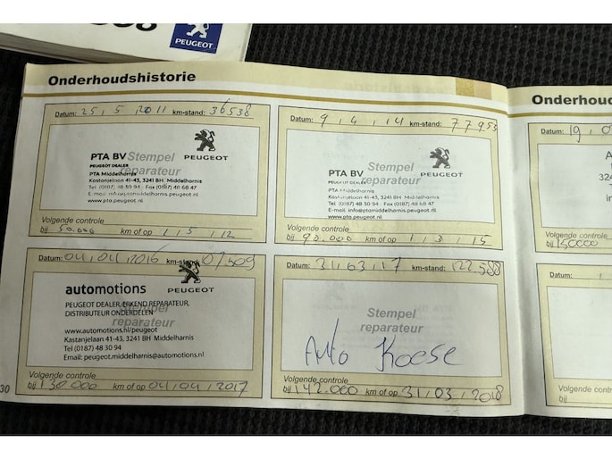 Onderhoudsboekjes: Aanwezig
