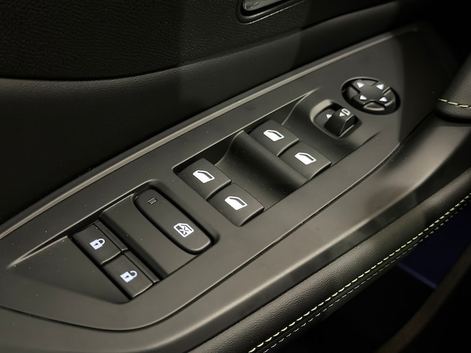 - Dashboard, middenconsole en stuurwiel afgewerkt met groen stiksel
