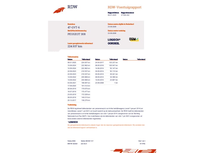 Kilometerstand gecontroleerd
