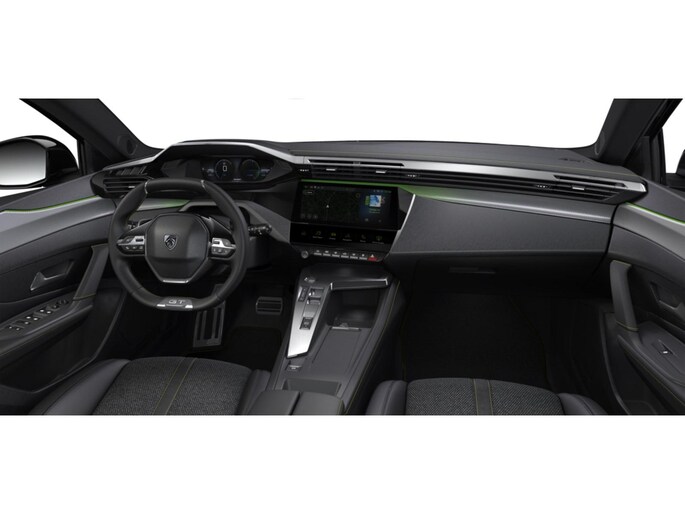 - Dashboard, middenconsole en stuurwiel afgewerkt met groen stiksel