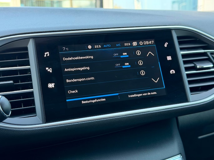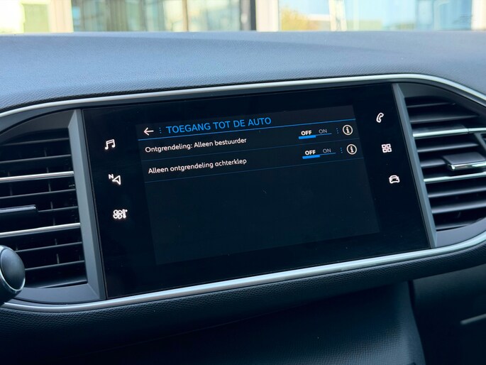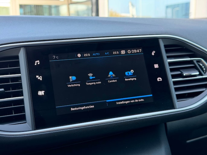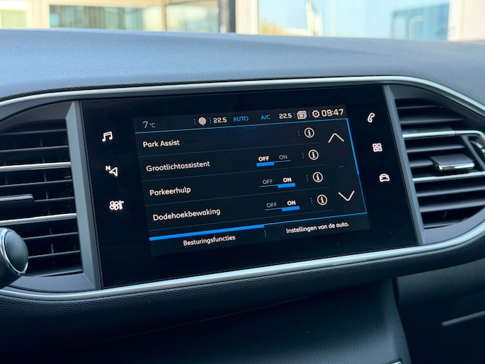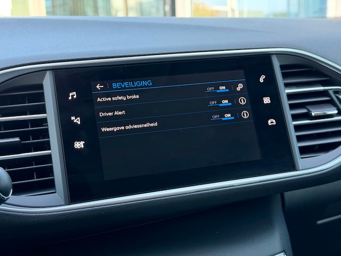 De nieuwste veiligheidssystemen komen in deze Peugeot 308 SW samen. In het instrumentarium ziet u tijdens de rit ook de belangrijkste verkeersborden aangegeven, die de auto automatisch voor u leest. Indien u onbedoeld de rijstrook lijkt te verlaten, reageert het Lane-keeping systeem meteen en corrigeert. Forward collision warning waarschuwt bij een dreigende aanrijding en vermindert de gevolgen van een ongeval. Ook helpen het dodehoekdetectie, accident avoidance system, hill hold functie, brake assist, vermoeidheidsherkenning en bandenspanningcontrolesysteem, uw rit tot een veilige rit te maken.
